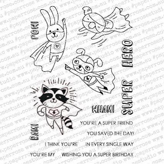 I'm using the Paper Rose Super Hero Fun set with the critter bursting out of the page.