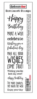 I stamped the Darkroom Door Happy Birthday Sentiment Strip in the Mulberry ink and cut the sentiments into strips. I picked these sentiments for my card and used the mulberry ink to edge them. Before I glued my sentiment down, I found some fun purple felt and added it to the back of the main sentiment.